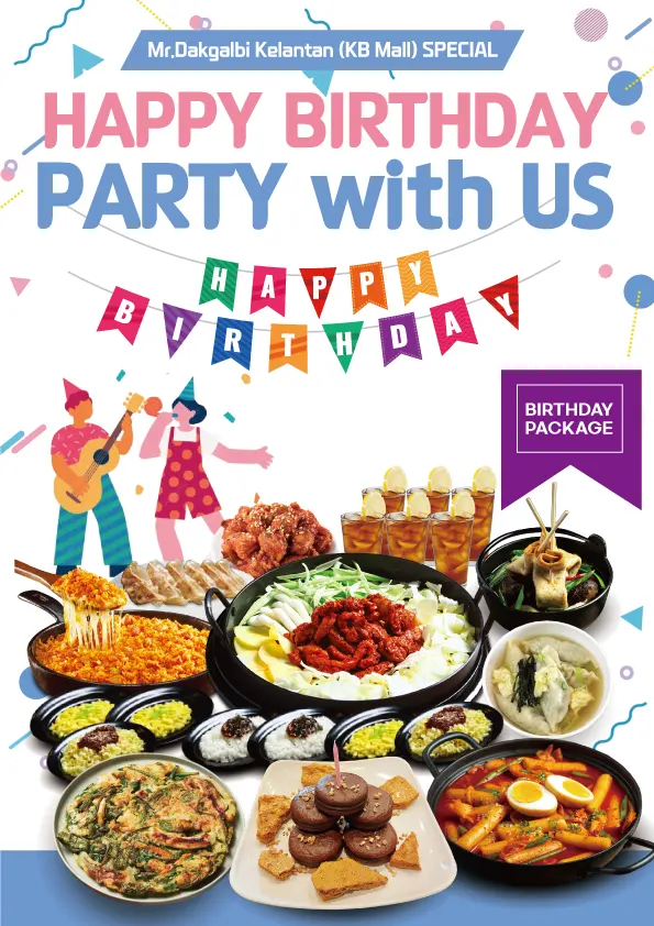 [NEW] Happy birthday! Package served Mr.dakgalbi 1pax + 2 add on + 1 soup + 1 Tteokbokki + 1 Fried mandu +2 icelemon tea + 1 chocopie cake"
